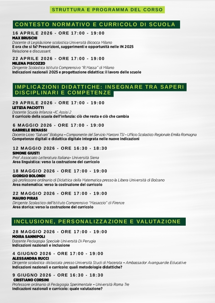 “Le nuove indicazioni nazionali 2025” percorso formativo online per docenti e dirigenti (10 incontri)